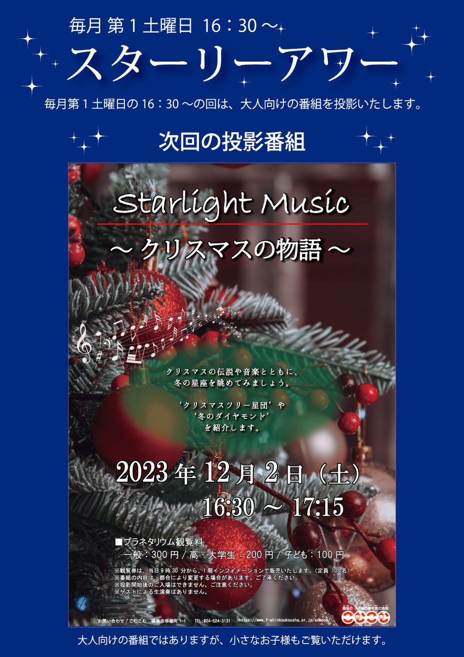| お問い合わせ | 福島市子どもの夢を育む施設 TEL:024-524-3131 |