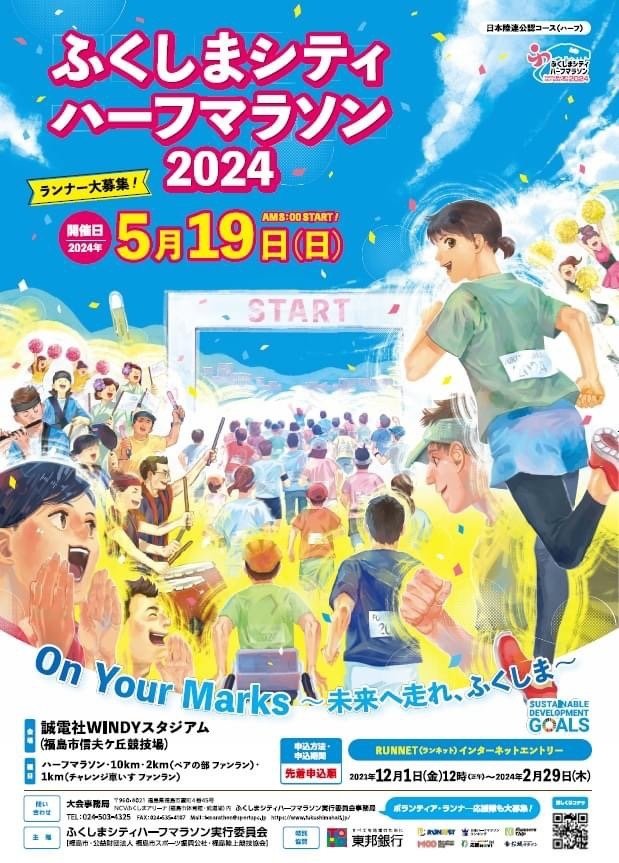 | お問い合わせ | 主催/ふくしまシティハーフマラソン実行委員会 (福島市、公益財団法人福島市スポーツ振興公社、福島陸上競技協会) 主管/県北陸上競技協会 |