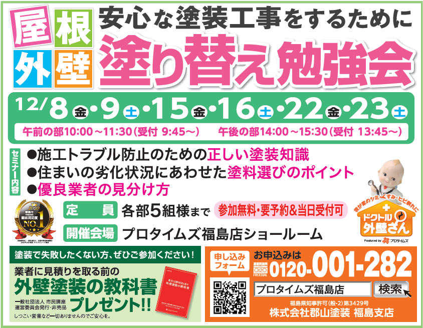 12月の塗り替え勉強のお知らせ📚【12/1~12/28毎週㊎・㊏開催】