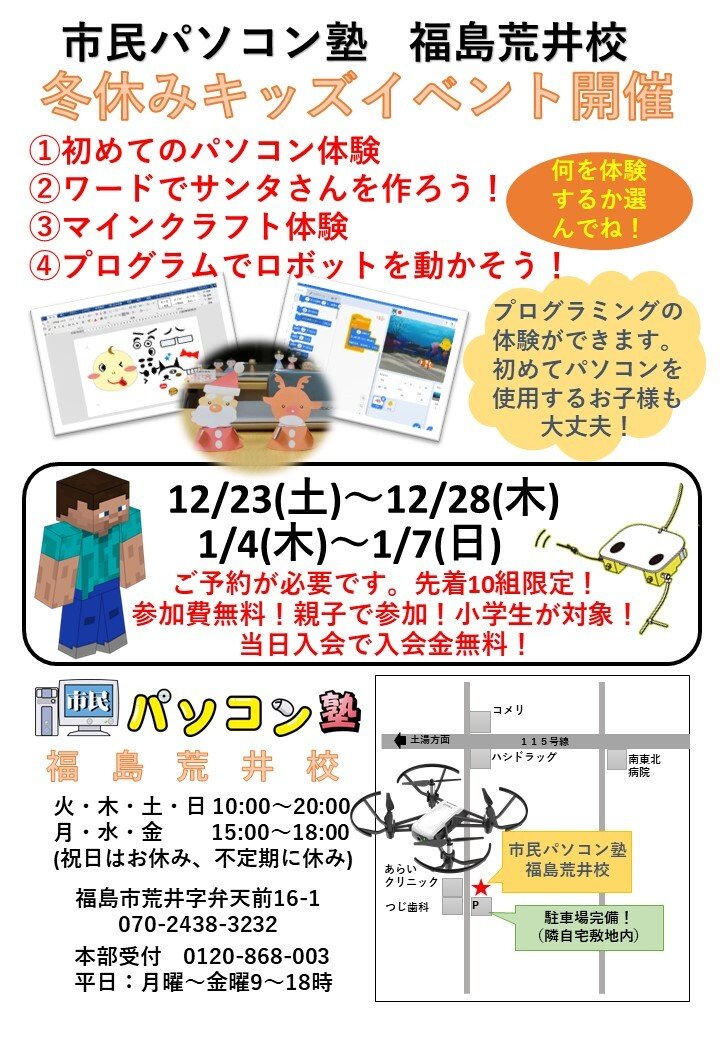| お問い合わせ | 市民パソコン塾 福島荒井校 ☎070-2438-3232 |