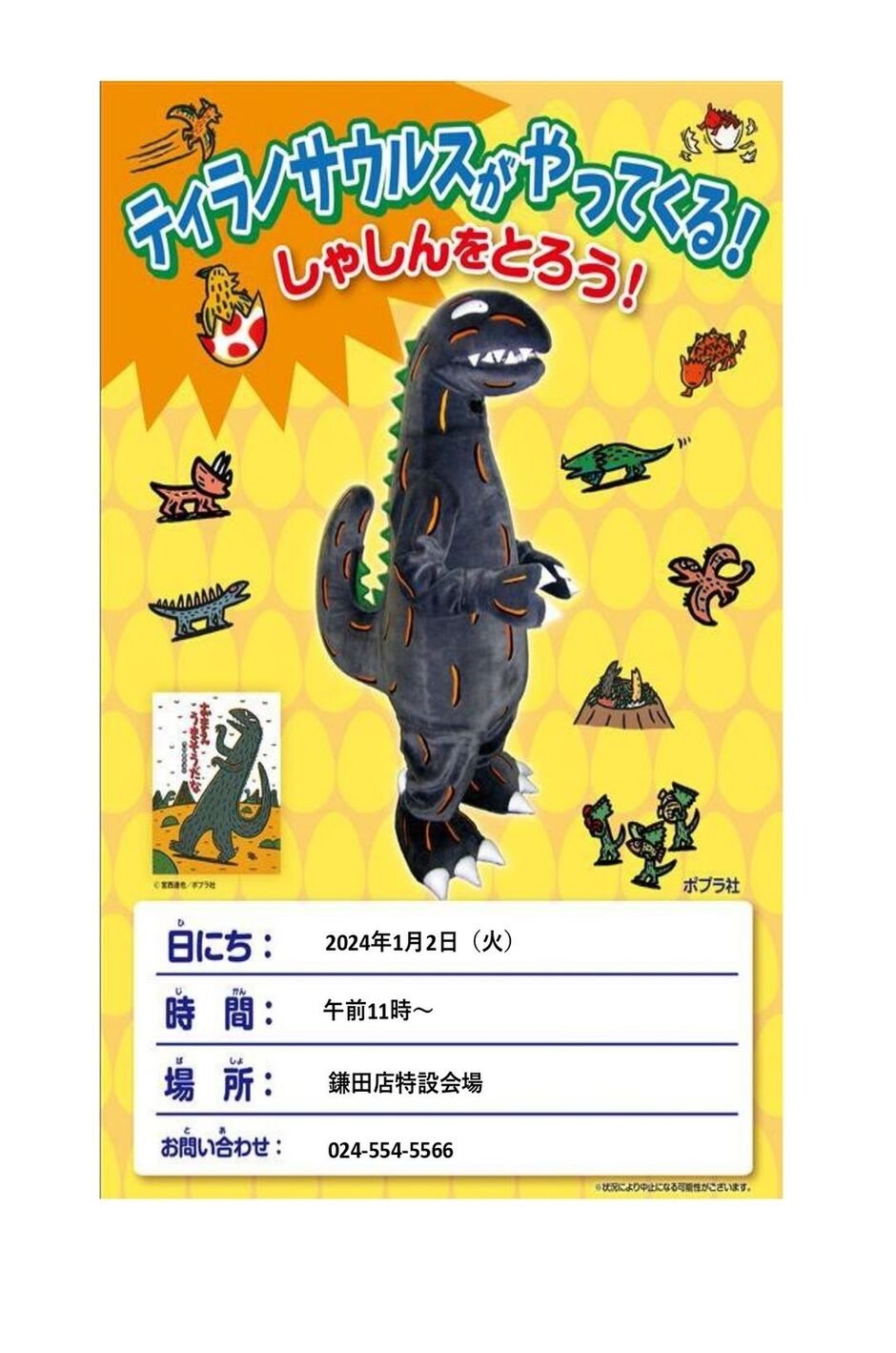 ティラノサウルスがやってくる!しゃしんをとろう!