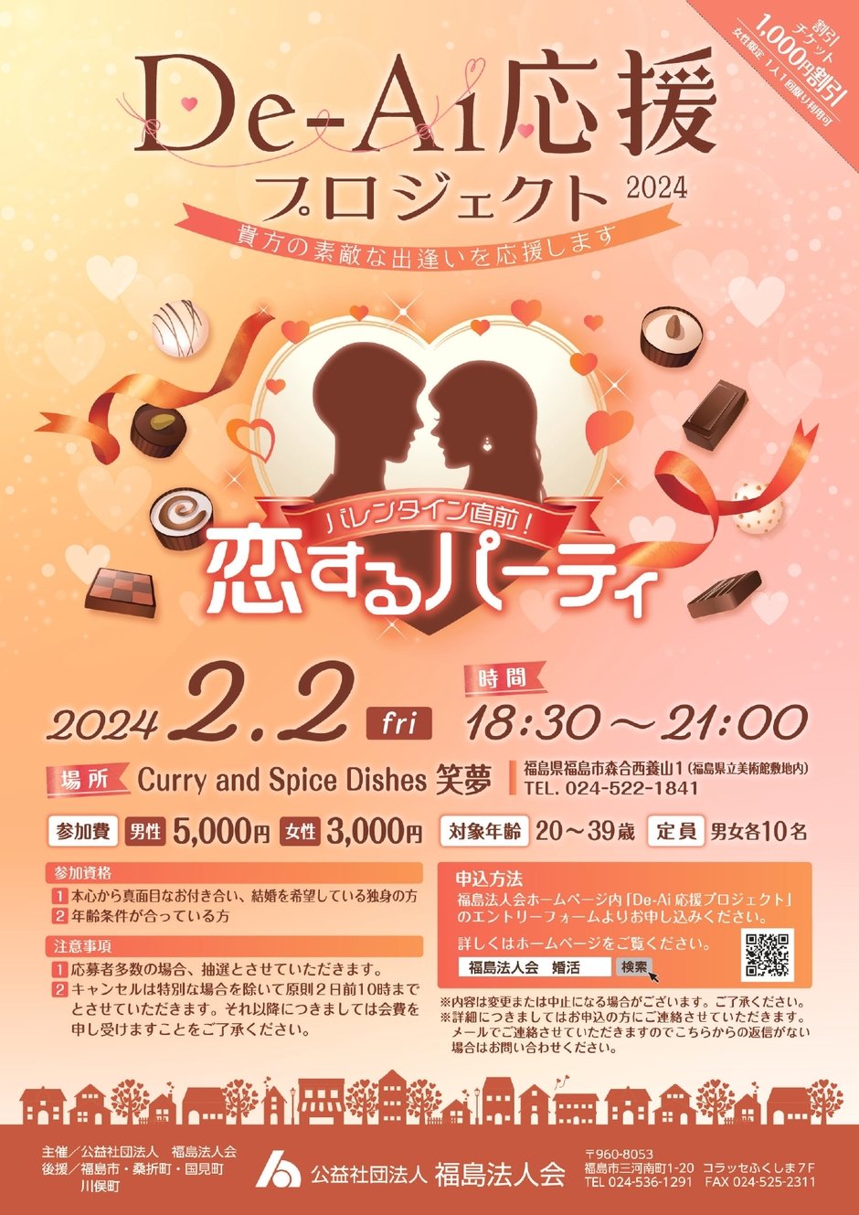 | 参加費 | 男性5000円 女性3000円 |
