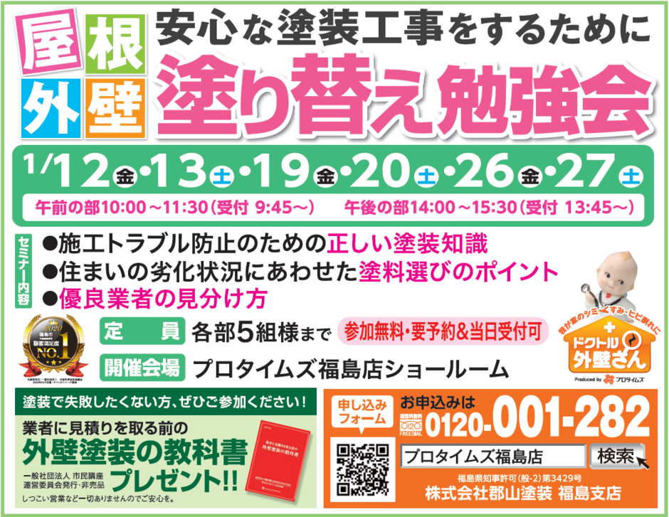 1月の塗り替え勉強のお知らせ📚【1/9~1/31毎週㊎・㊏開催】