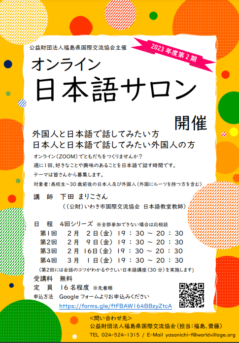 | お問い合わせ | 〒960-8103 福島県福島市舟場町2番1号 福島県庁舟場町分館2階 TEL:024-524-1315 yasanichi-f@worldvillage.org 担当:福島 |