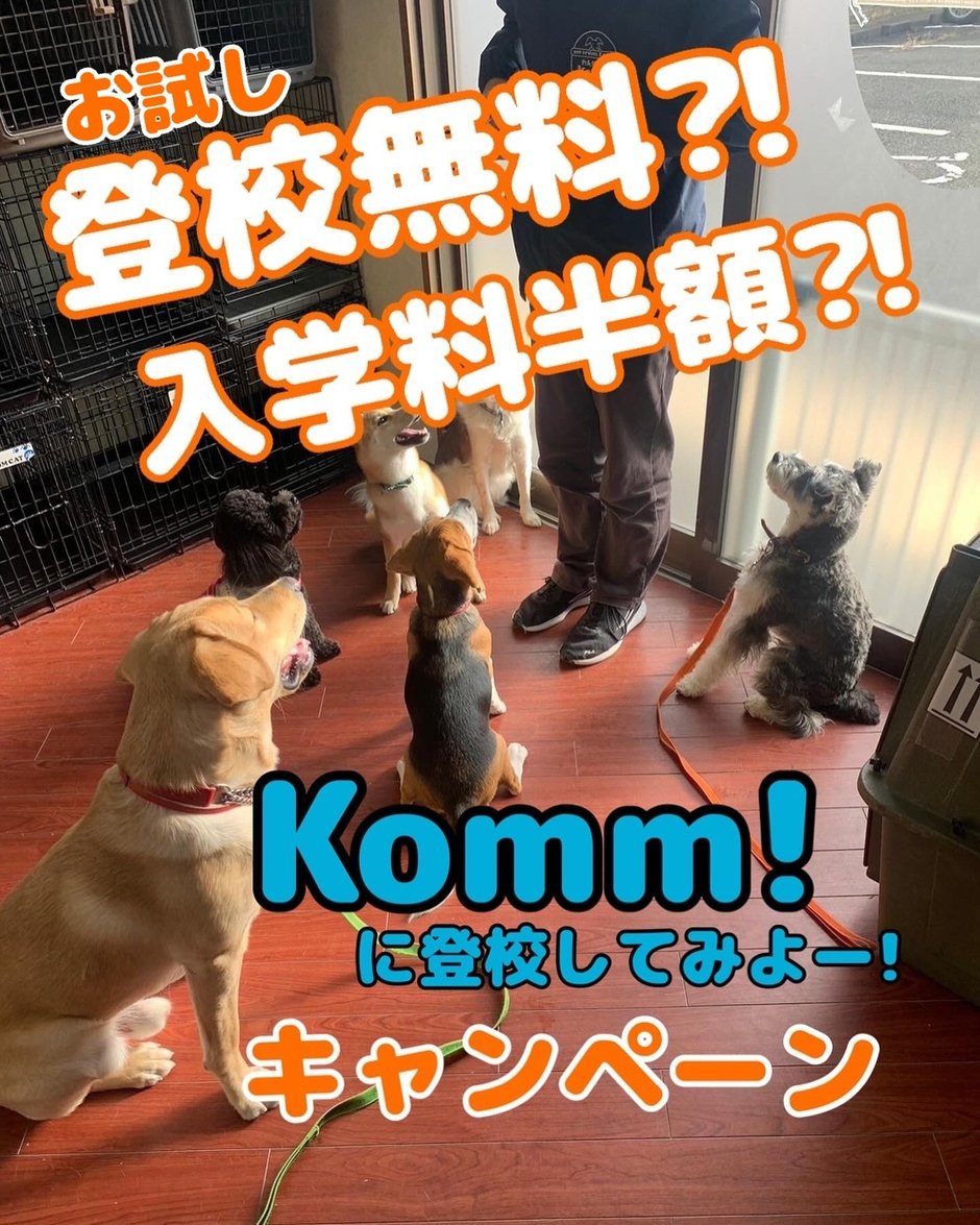 ワンちゃん自身にKomm!感じてもらうのがお試しコースです。Komm!を体験して、大きく成長しましょう!沢山のお友達🐶やスタッフとのコミュニケーションを体験させてみましょう!