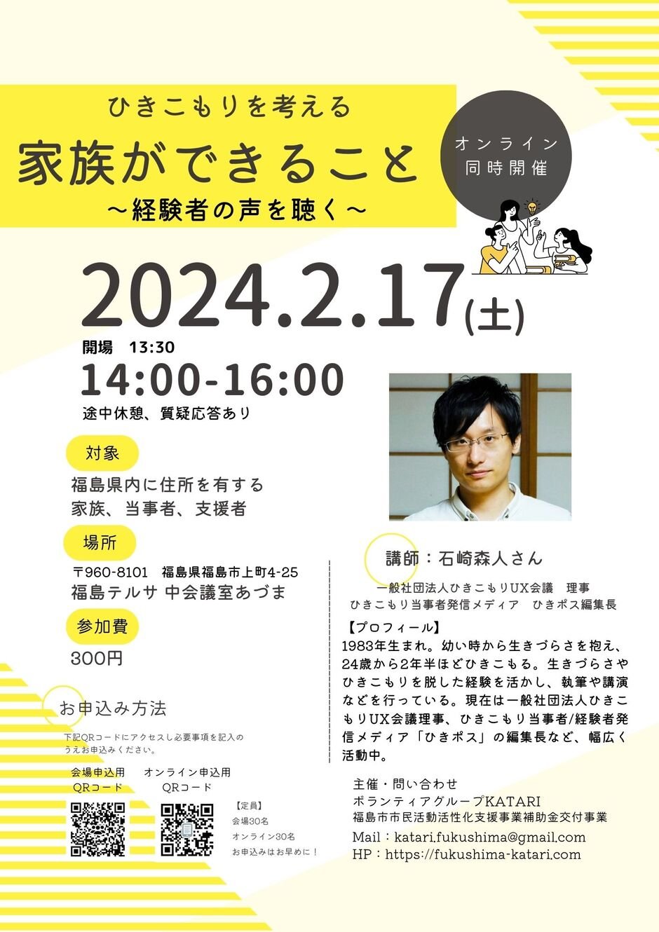| お問い合わせ | ボランティアグループKATARI 運営事務局 ホームページ:https://fukushima-katari.com Eメール:katari.fukushima@gmail.com |