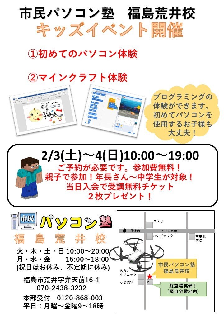 市民パソコン塾 福島荒井校 2024年2月度 キッズイベント開催