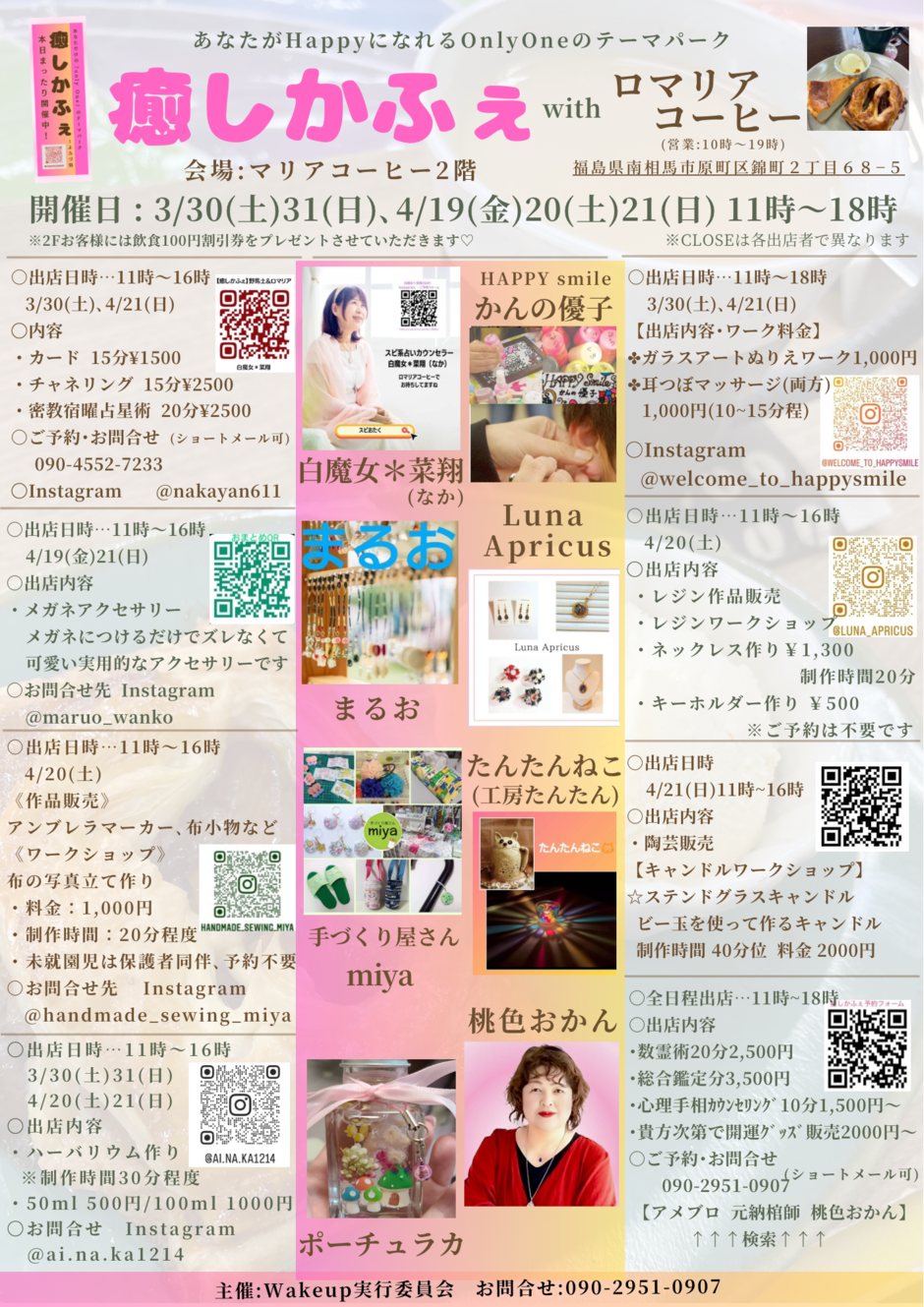 | お問い合わせ | ○主催者…Wakeup実行委員会(金沢) ○メールアドレス…momoirookan1896@yahoo.co.jp ○電話番号…090-2951-090 |