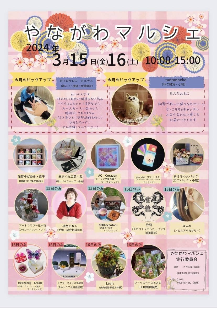 | お問い合わせ | やながわマルシェ実行委員会 09094274282(安藤) |