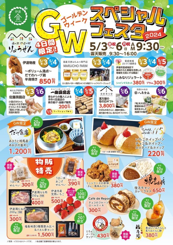 | お問い合わせ | 道の駅 伊達の郷 りょうぜん 〒960-0808 福島県伊達市霊山町下小国字桜町3-1 TEL.024-573-4880 |