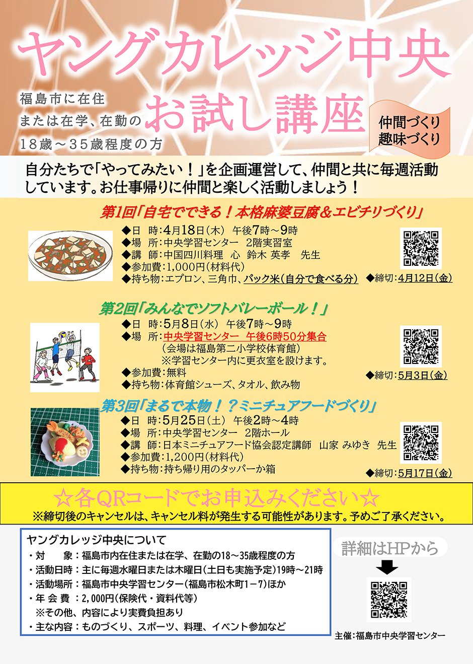 | お問い合わせ | 中央学習センター 960-8018 福島市松木町1番7号 024-534-6631 |