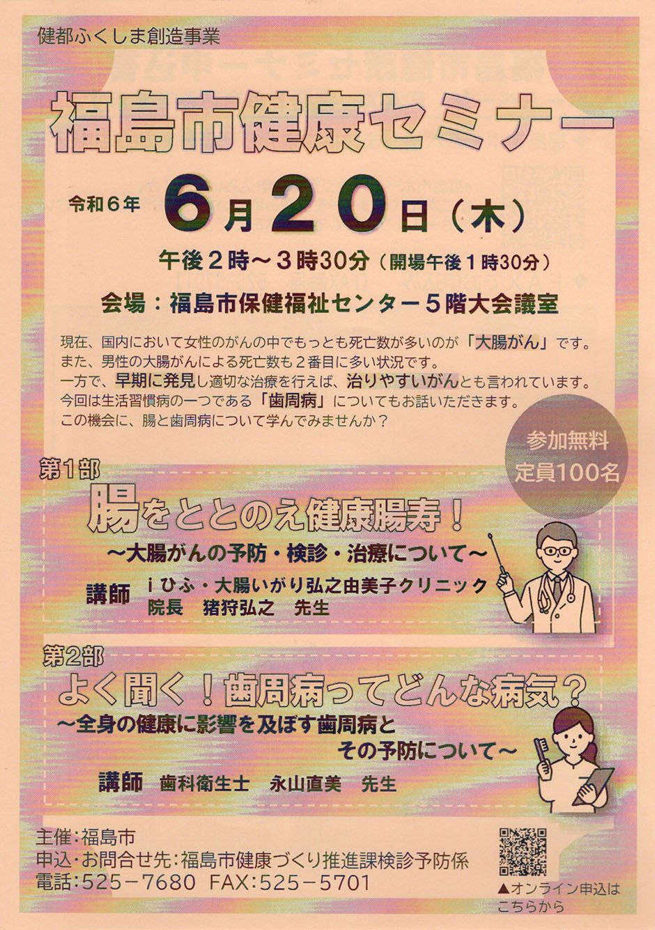| お問い合わせ | 申し込み 福島市健康づくり推進課検診予防係 525-7680 |