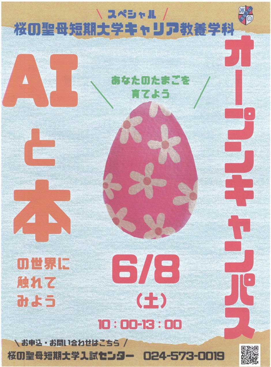 | お問い合わせ | お申し込み・お問い合わせ 桜の聖母短期大学入試センター 024-573-0019 |