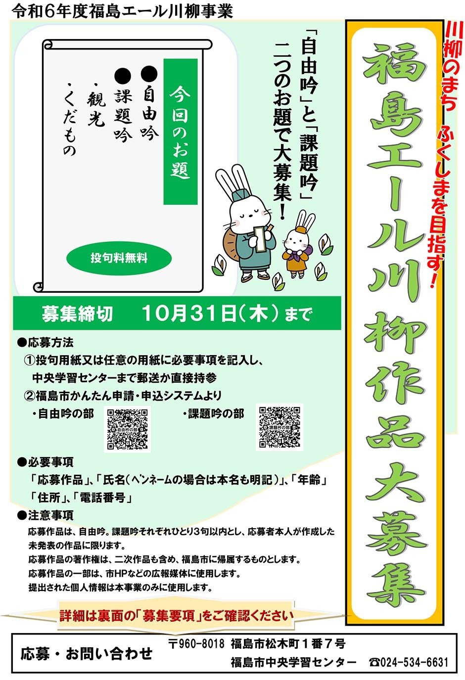 | お問い合わせ | 中央学習センター 960-8018 福島市松木町1番7号 電話番号:024-534-6631 |