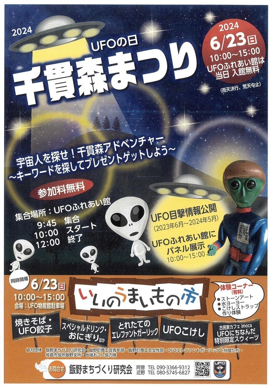 国際的なUFOの日(6月24日)と、国際未確認飛行物体(UFO)研究所設立3周年を記念して、「UFOの日千貫森まつり」を開催します。
