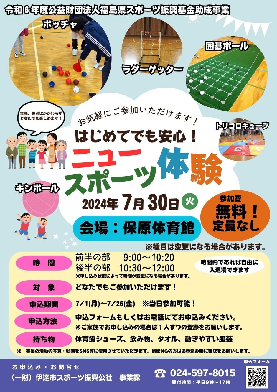 | お問い合わせ | 一般財団法人 伊達市スポーツ振興公社 事業課 MAIL info@date-sports.com TEL 024-597-8015 |