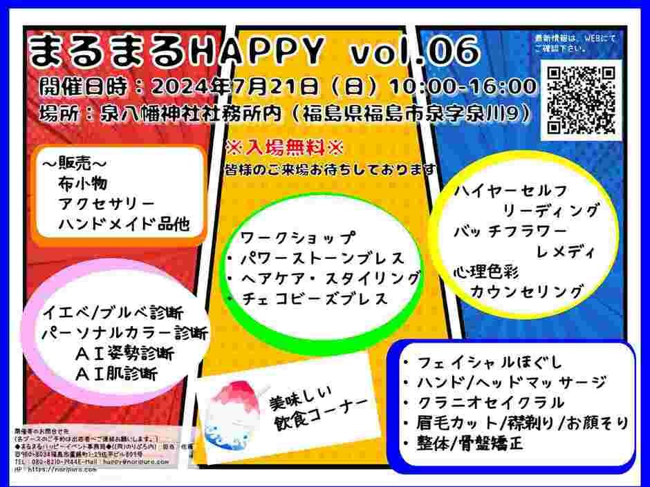 | お問い合わせ | 開催等のお問合せ先 (各ブースのご予約は出店者へご連絡お願いします。) ◆まるまるハッピーイベント事務局◆ 〒960-8034福島市置賜町1-29佐平ビル809号 TEL:080-8210-1944 E-Mail:happy@noripuro.com HP:https://noripuro.com (合同会社のりぷろ内) 担当:佐藤 |