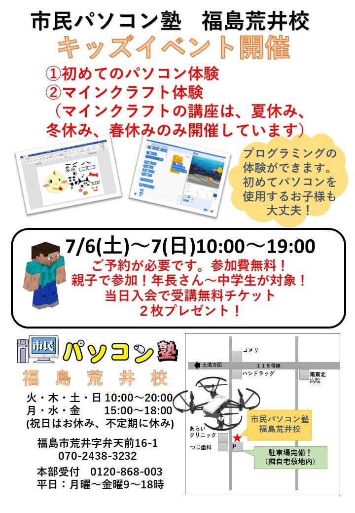 市民パソコン塾 福島荒井校 2024年7月度キッズイベント開催