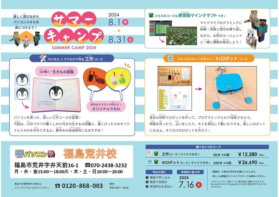 | お問い合わせ | 市民パソコン塾 福島荒井校 ☎070-2438-3232 |