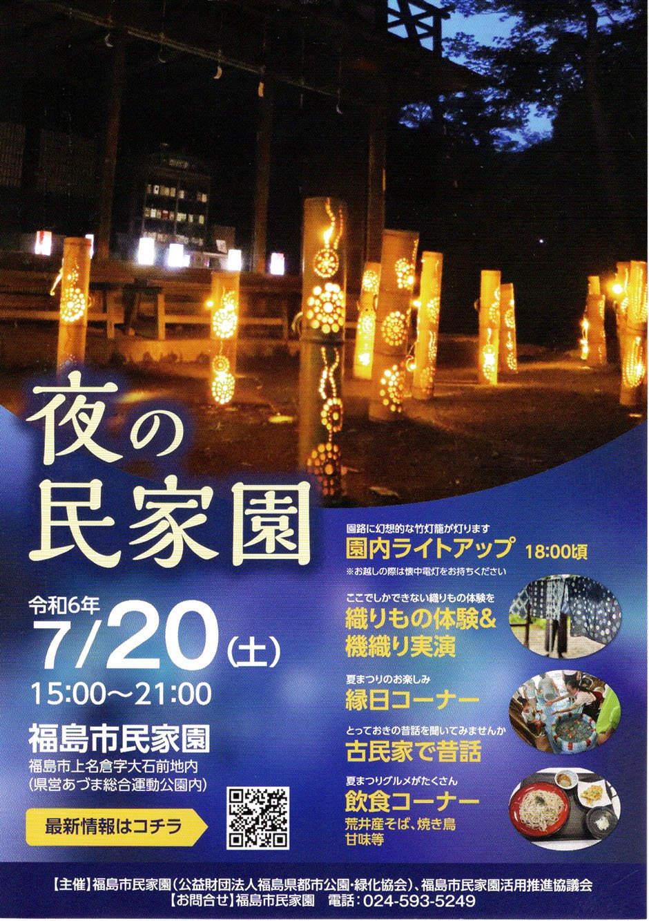 | お問い合わせ | 福島市民家園 〒960-2155 福島市上名倉字大石前地内(あづま総合運動公園内) TEL・FAX:024-593-5249 |