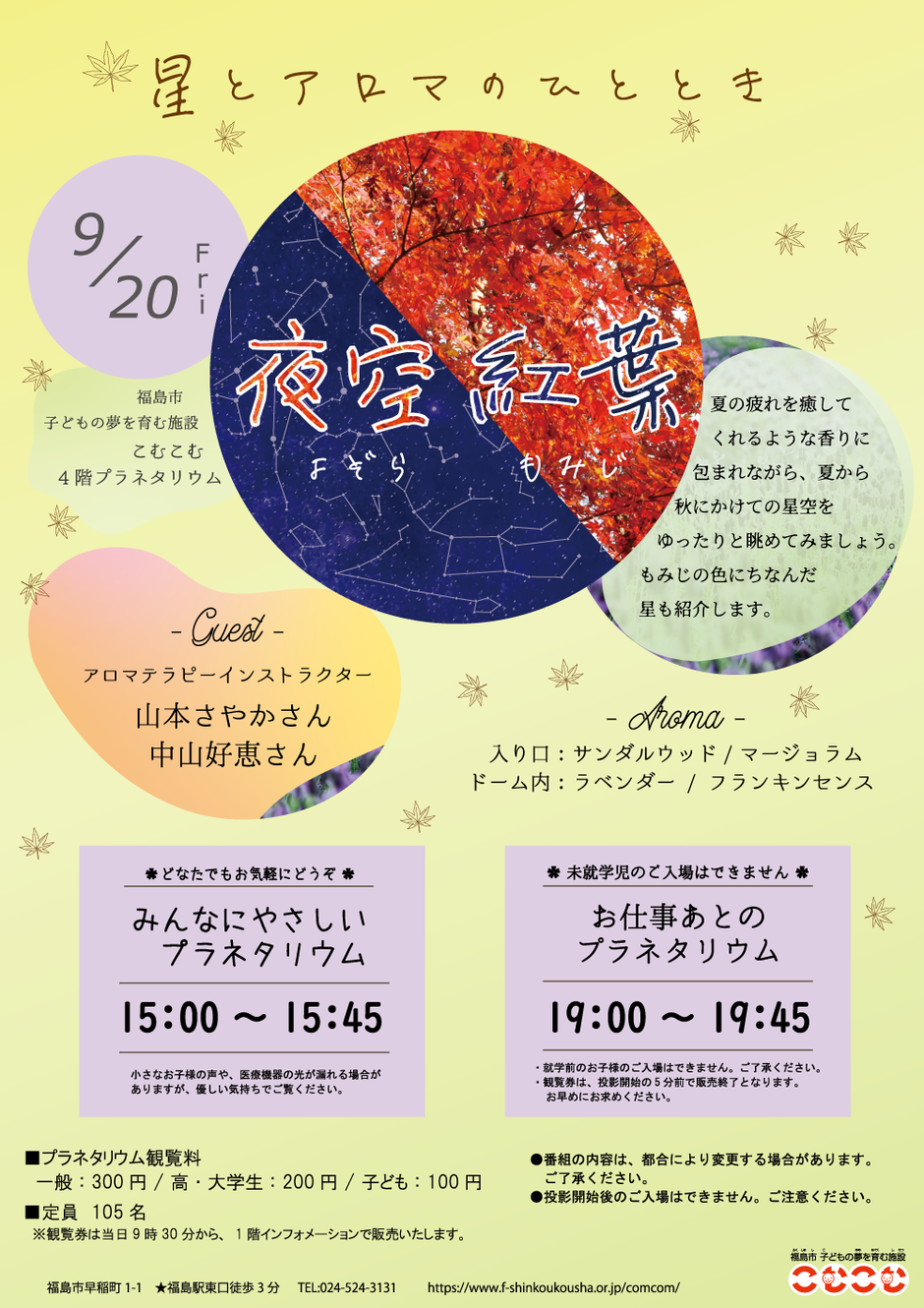 | お問い合わせ | 福島市子どもの夢を育む施設 TEL:024-524-3131 |
