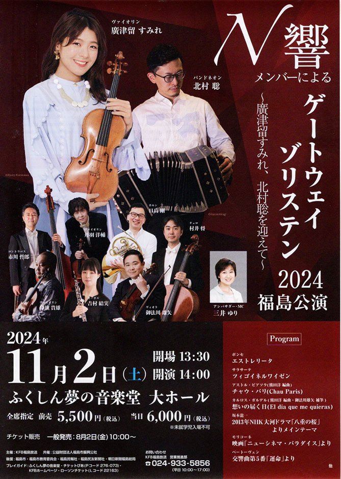 | お問い合わせ | 主催/福島放送 共催:公益財団法人福島市振興公社(ふくしん夢の音楽堂) 後援/福島市 福島市教育委員会 福島民報社 福島民友新聞社 朝日新聞福島総局 企画制作 ヴィガーK2 お問い合わせ 福島放送 営業推進部 024-933-5856 (平日10:00~17:00) |