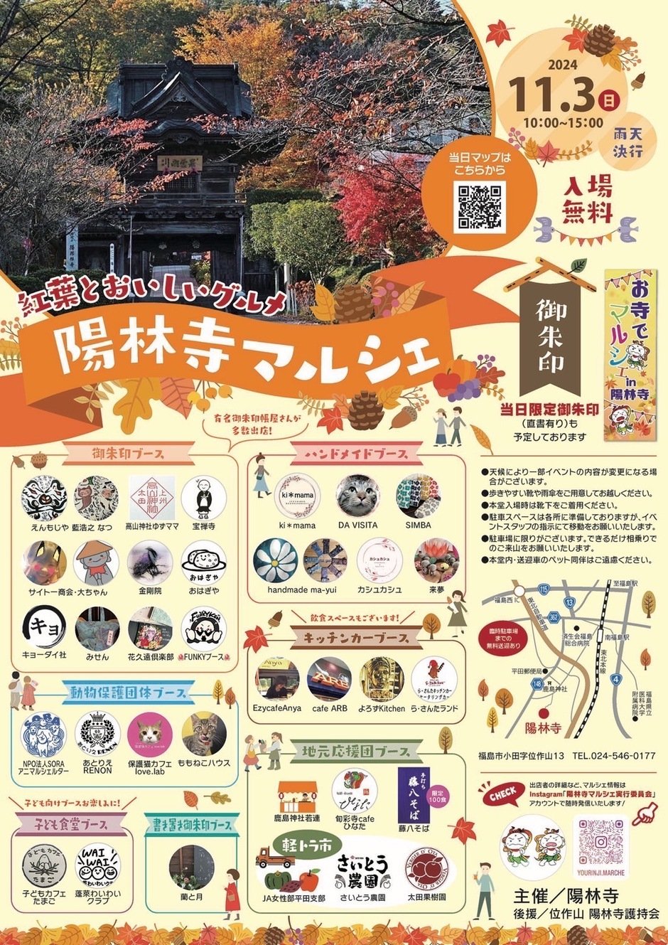 | お問い合わせ | 主催 陽林寺マルシェ実行委員会 メールアドレス isakusan.yourinji@gmail.com TEL 0245460177 FAX 0245635355 |