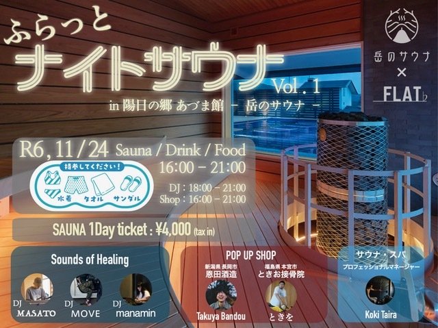 | お問い合わせ | 岳のサウナ × FLAT TEL:0243-24-2211 |