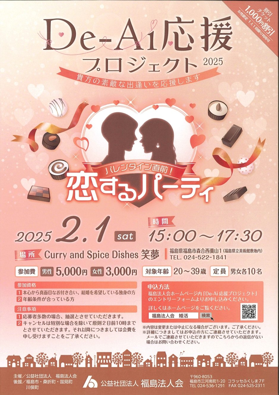 | 参加費 | 男性 5,000円 女性 3,000円 |