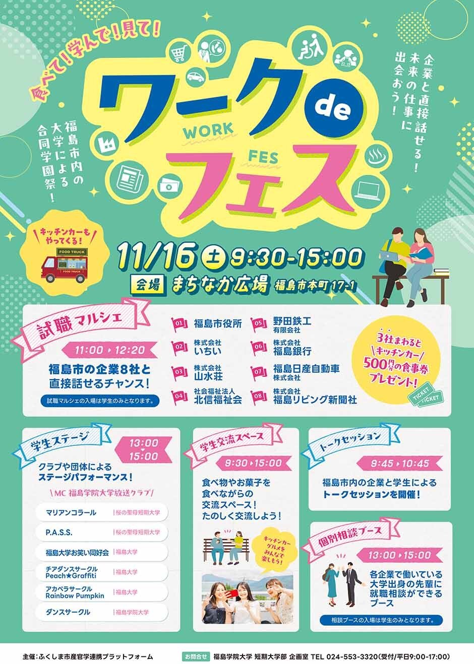 | お問い合わせ | 主催:ふくしま市産官学連携プラットフォーム 問い合せ:024-553-3320(福島学院大学 企画室) |