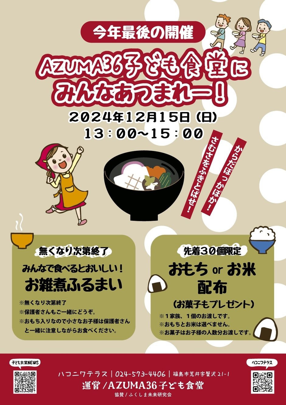| 関連サイト | https://azuma36cafe.com/detail/1651/news/azumasanrokukodomoshokudou-458989.html |