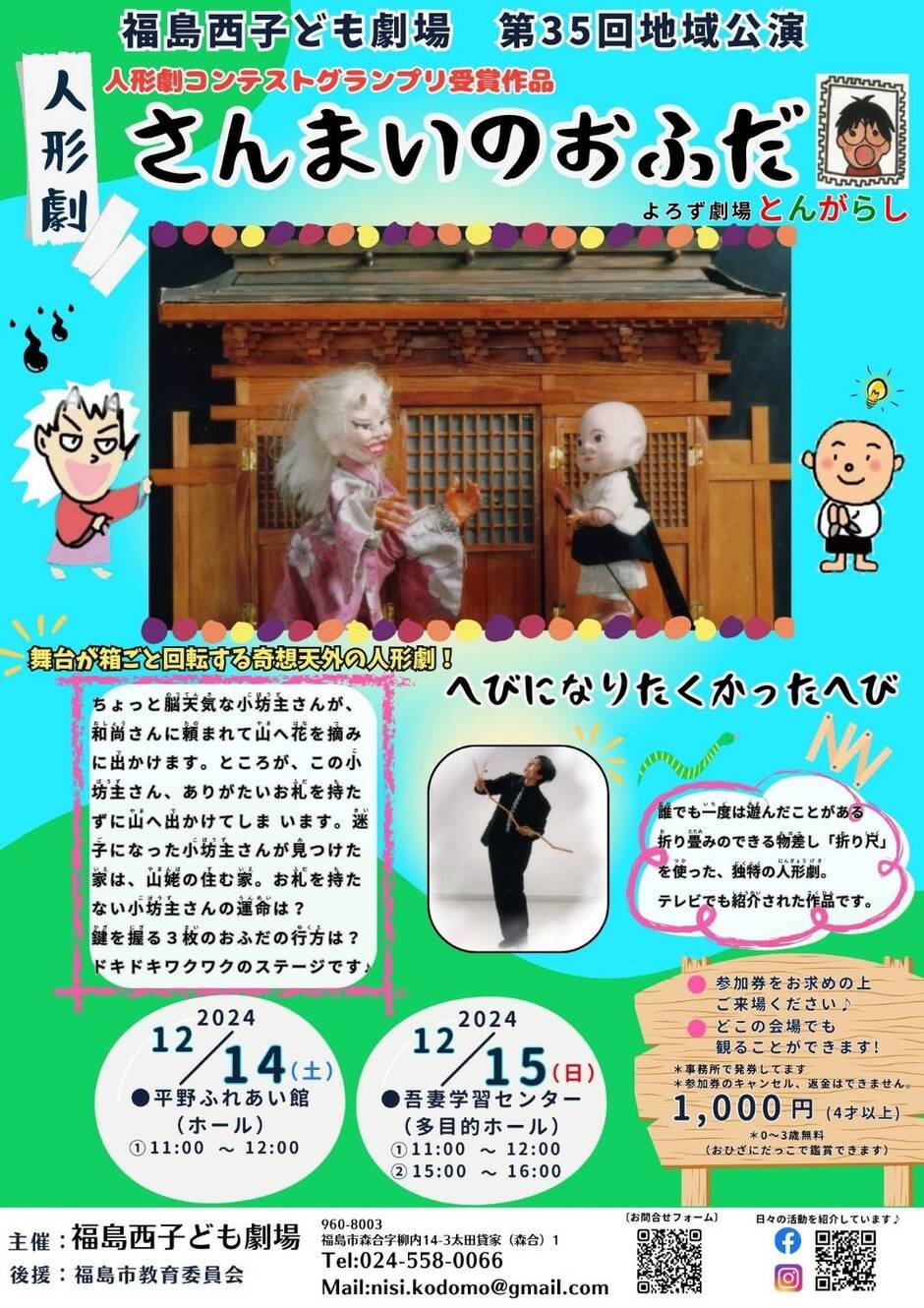 | 参加費 | 1000円(4歳以上)(0~3歳はおひざにだっこで観ることができます) |