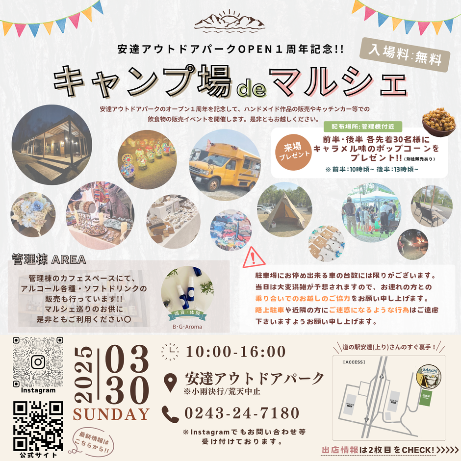 安達太良山が一望できるキャンプ場。プチカフェやシャワー完備の大自然の中でも洗練された空間が広がるアウトドアパーク。