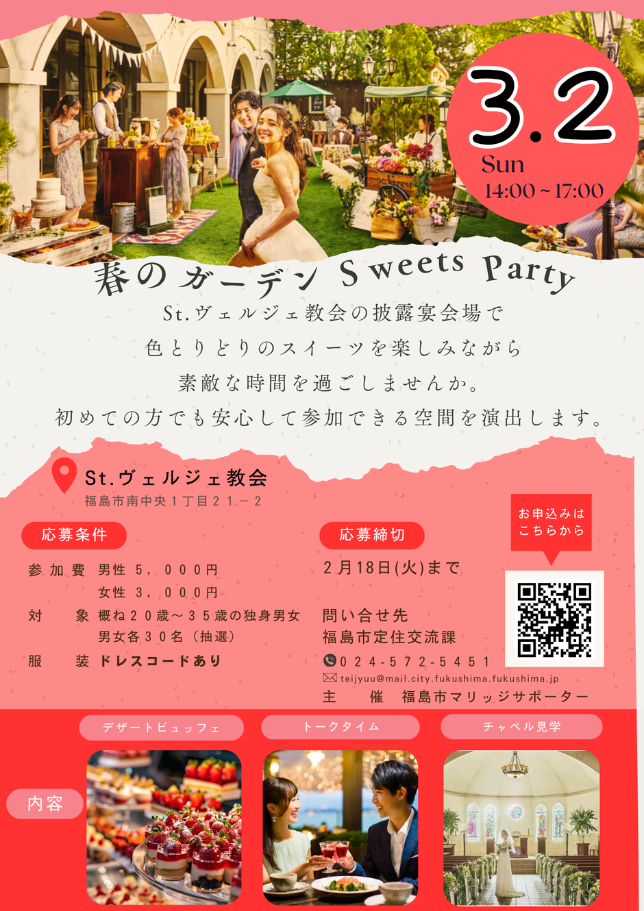 | お問い合わせ | 福島市マリッジサポーター(事務局:福島市定住交流課) メール : teijyuu@mail.city.fukushima.fukushima.jp 電話番号: 024-572-5451  |
