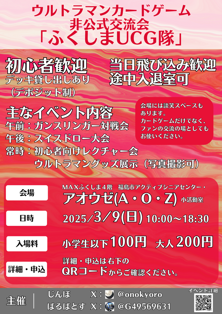 | 参加費 | 小学生以下100円 大人200円 |
