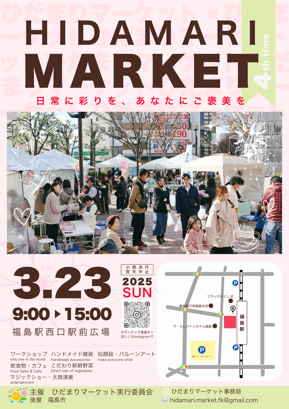 | お問い合わせ | ひだまりマーケット実行委員会 hidamari.market.fk@gmail.com 担当 阿部 |