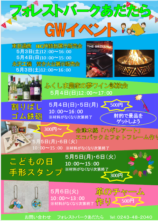 | お問い合わせ | 福島県民の森 フォレストパークあだたら TEL:0243-48-2040 |