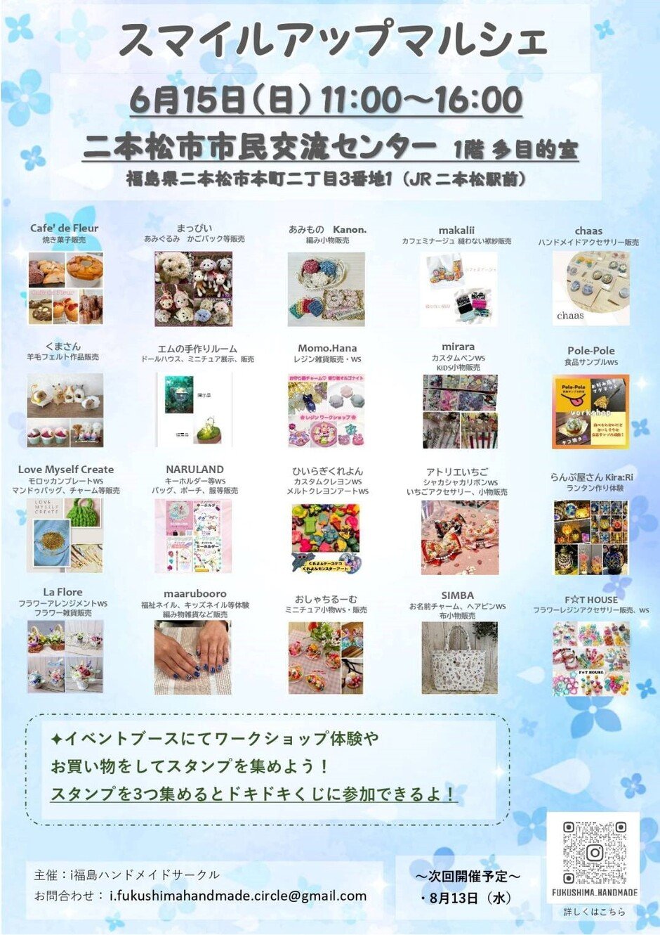 | お問い合わせ | 主催者名:i福島ハンドメイドサークル TEL:090-6224-2225(事務局 佐藤) メールアドレス:i.fukushimahandmade.circle@gmail.com HP:https://www.instagram.com/fukushima_handmade |