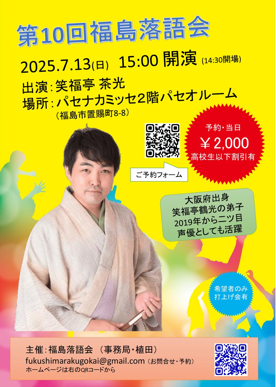 | お問い合わせ | 福島落語会 事務局・植田 fukushimarakugokai@gmail.com |