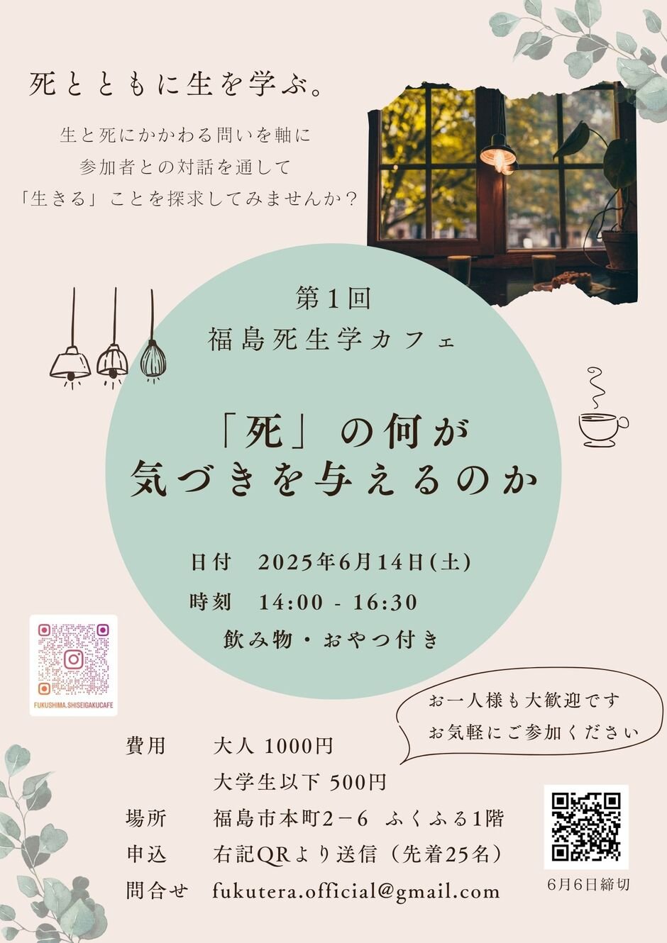 | お問い合わせ | 福島死生学カフェ世話人会 fukutera.official@gmail.com 080-4614-2794 |
