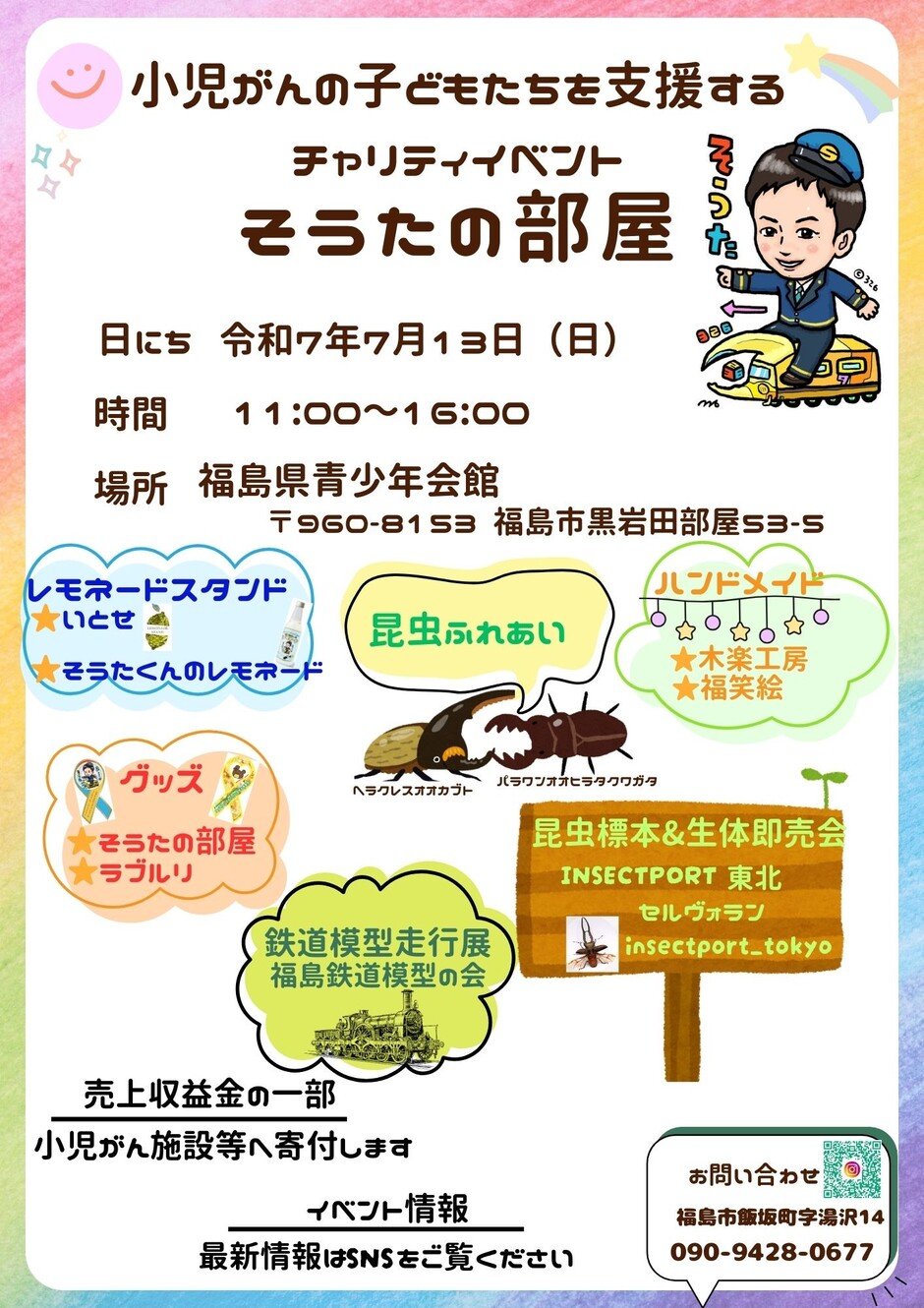 | お問い合わせ | 小児がんの子供達を支援する会 そうたの部屋 souta.no.heya.fukushima@gmail.com 090-9428-0677 |
