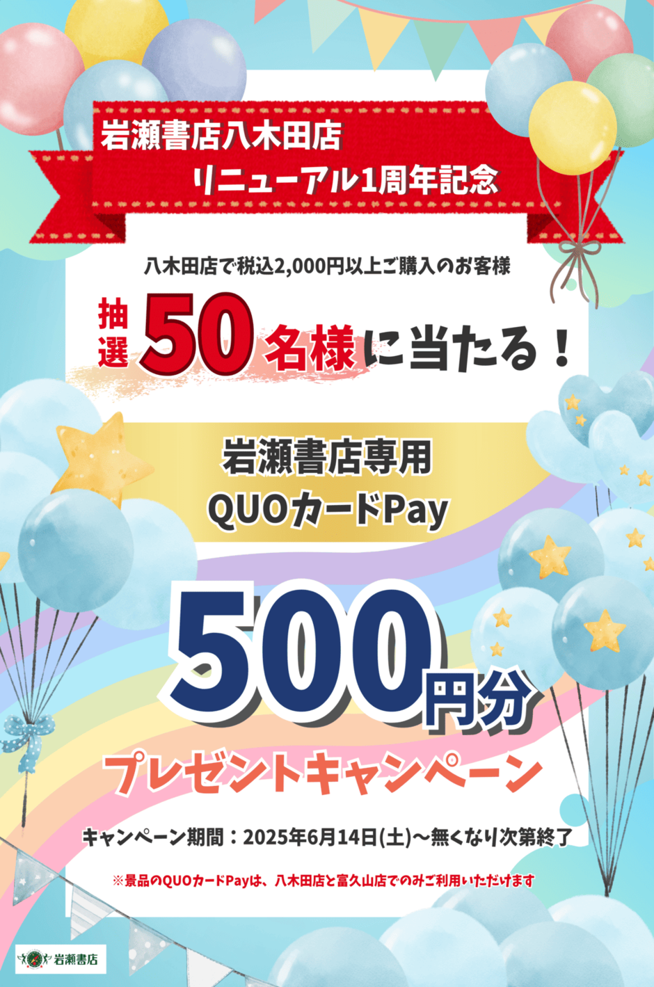 岩瀬書店専用QUOカードPay500円分プレゼントキャンペーン開催します!