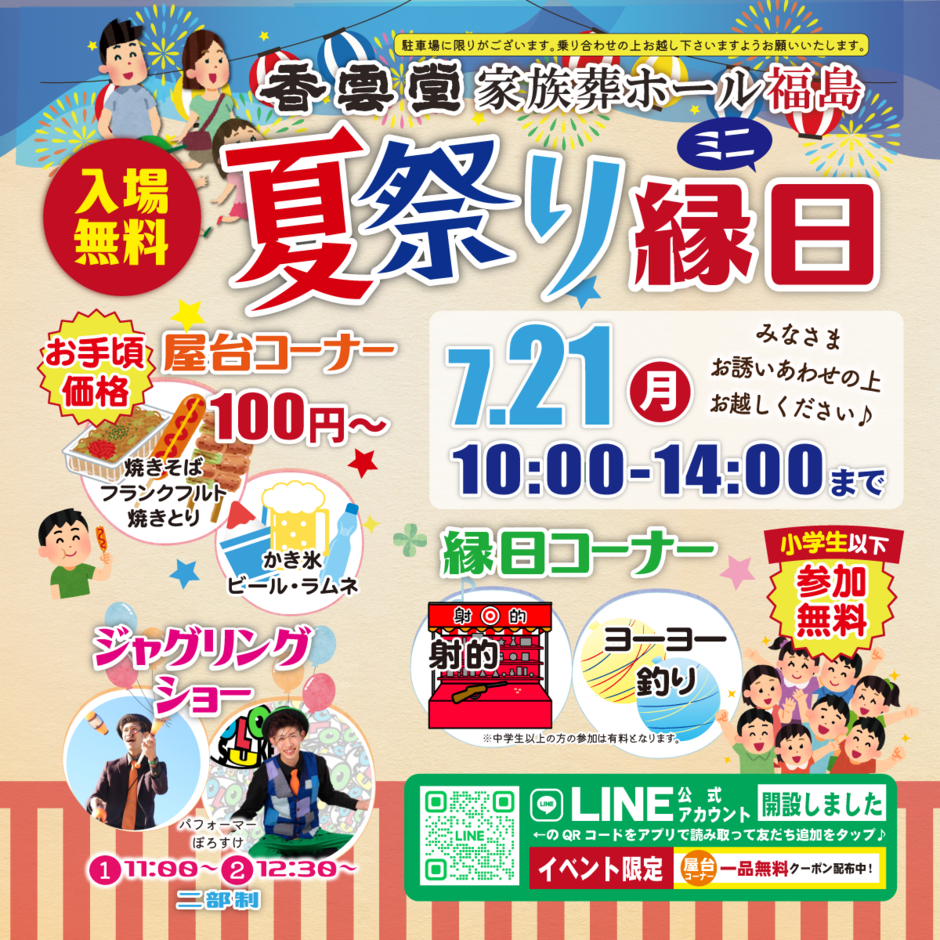 総合葬祭 香雲堂(こううんどう)ではこの度「夏祭りミニ縁日イベント」を開催いたします。