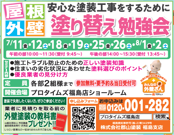 外壁塗装、塗り替えならプロタイムズ福島店へお任せください。