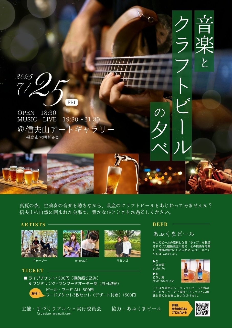 真夏の夜、生演奏の音楽を聴きながら、県産のクラフトビールをあじわってみませんか?