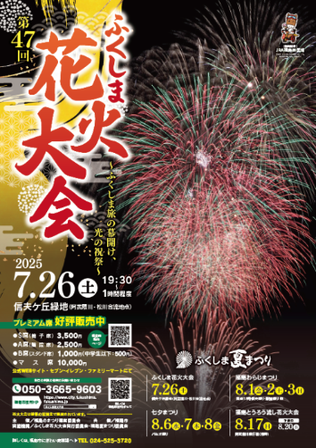 | お問い合わせ | ふくしま花火大会実行委員会(福島市商工観光部 にぎわい商業課) 024-525-3720(9:00~17:00 平日のみ) |