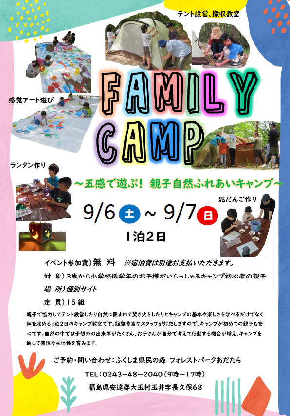 | お問い合わせ | ふくしま県民の森フォレストパークあだたら TEL:0243-48-2040 |