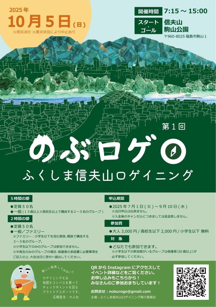 | お問い合わせ | お問い合わせ 事務局 Analog Lab.アナログラボ (TEL 024-502-6950)担当:三浦 ✅申し込みは「ふくしま信夫山ロゲイニング」(@shinobuyama.rogaining)のインスタグラムより受付 https://www.instagram.com/shinobuyama.rogaining/ |