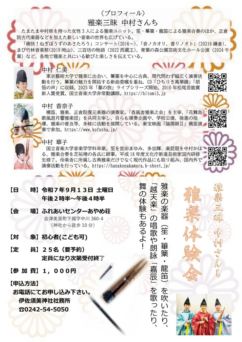 | お問い合わせ | 伊佐須美神社社務所 ℡0242-54-5050 |