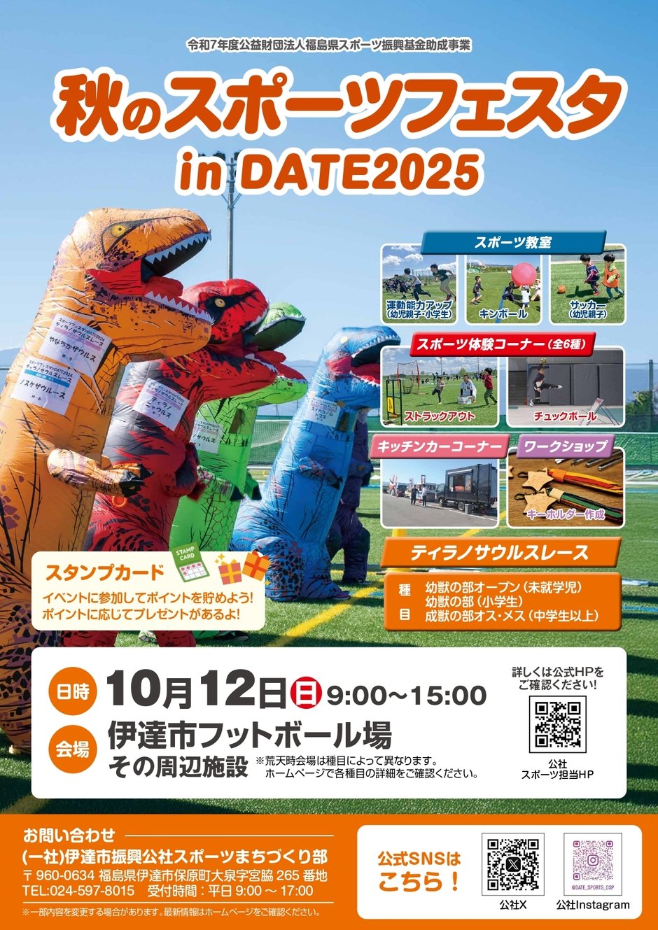 | お問い合わせ | (一社)伊達市振興公社 スポーツまちづくり部 MAIL:info@date-sports.com TEL:024-597-8015 |